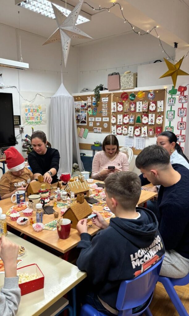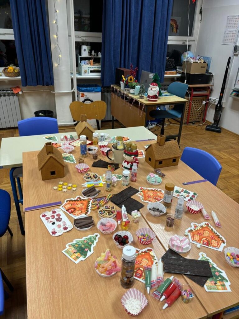 U blagdanskom duhu i veselom raspoloženju, učenici posebnog razrednog odjela naše škole zajedno su sa svojim roditeljima i ostalim članovima obitelji sudjelovali u božićnoj radionici ukrašavanja kućica od medenjaka. Radionica je bila prilika za zajedničko druženje i stvaranje lijepih uspomena koje će svi sudionici ponijeti sa sobom u nadolazeće blagdane.