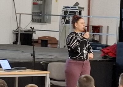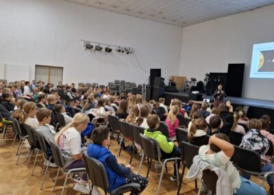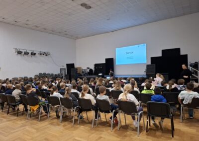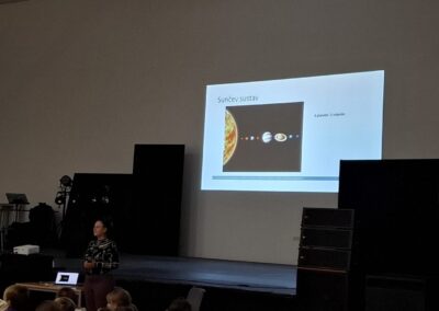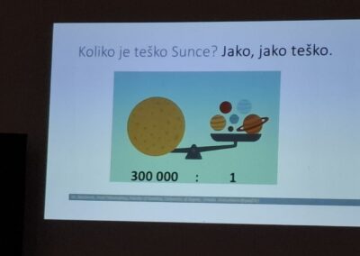 Na kraju je odgovarala na pitanja kojih nije nedostajalo. Inače, Mateja je više puta surađivala s OŠ Prečko i uvijek se rado odazove pozivima. Osim predavanja osmislila je i predstavu Svemirska prognoza koju su učenici OŠ Prečko izveli na Europskoj noći istraživača.